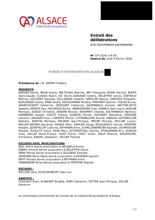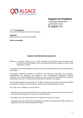 Le présent rapport a pour objet d'approuver l'attribution des subventions de fonctionnement accordées au titre du Fonds d'Intervention Alsacien, selon la liste détaillée en annexe.