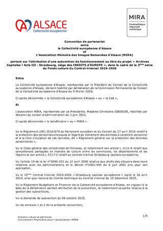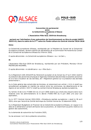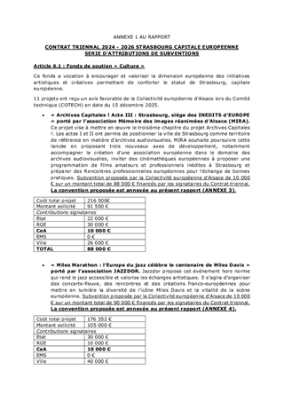 SUBVENTIONS CONTRAT TRIENNAL STRASBOURG CAPITALE EUROPEENNE