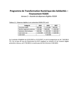 PROGRAMME DE TRANSFORMATION NUMERIQUE DES SOLIDARITES - FINANCEMENT FEDER