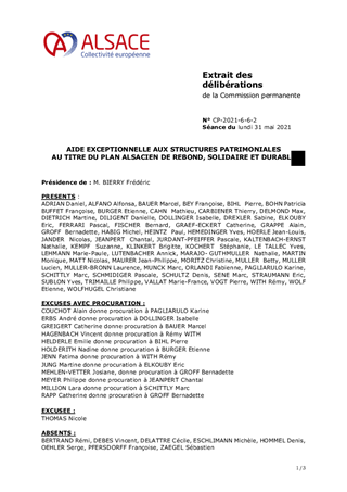AIDE EXCEPTIONNELLE AUX STRUCTURES PATRIMONIALES AU TITRE DU PLAN ALSACIEN DE REBOND, SOLIDAIRE ET DURABLE