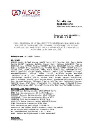 PDH - ADHÉSION DE LA COLLECTIVITÉ EUROPÉENNE D'ALSACE À LA SOCIÉTÉ DE COORDINATIONESTORIAET DÉSIGNATION DE SON REPRÉSENTANT AU CONSEIL DE SURVEILLANCE ET À L'ASSEMBLÉE GÉNÉRALE DE LADITE SOCIÉTÉ.