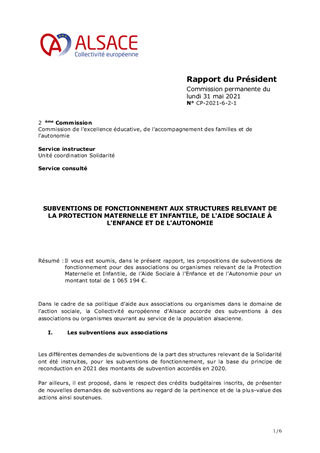SUBVENTIONS DE FONCTIONNEMENT AUX STRUCTURES RELEVANT DE LA PROTECTION MATERNELLE ET INFANTILE, DE L'AIDE SOCIALE À L'ENFANCE ET DE L'AUTONOMIE