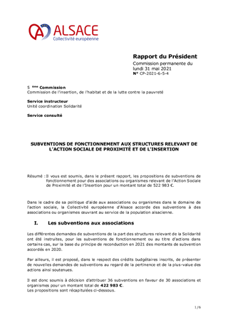 SUBVENTIONS DE FONCTIONNEMENT AUX STRUCTURES RELEVANT DE L'ACTION SOCIALE DE PROXIMITÉ ET DE L'INSERTION