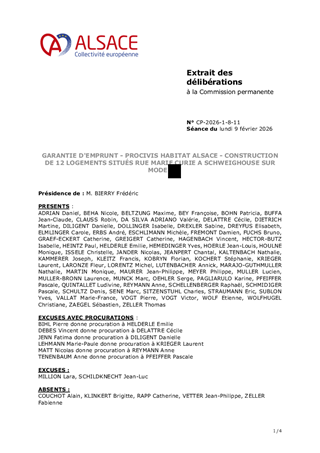 Il vous est proposé d’accorder la garantie d'emprunt à hauteur de 100 % à PROCIVIS HABITAT ALSACE pour un prêt d’un montant total de 2 250 000 € à souscrire auprès du Crédit Coopératif pour le financement de la construction de 12 logements PSLA situés Rue Marie Curie à SCHWEIGHOUSE SUR MODER.