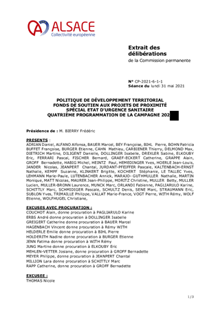 POLITIQUE DE DÉVELOPPEMENT TERRITORIAL FONDS DE SOUTIEN AUX PROJETS DE PROXIMITÉ SPÉCIAL ETAT D'URGENCE SANITAIRE QUATRIÈME PROGRAMMATION DE LA CAMPAGNE 2020