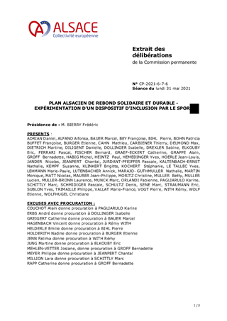 PLAN ALSACIEN DE REBOND SOLIDAIRE ET DURABLE - EXPÉRIMENTATION D'UN DISPOSITIF D'INCLUSION PAR LE SPORT