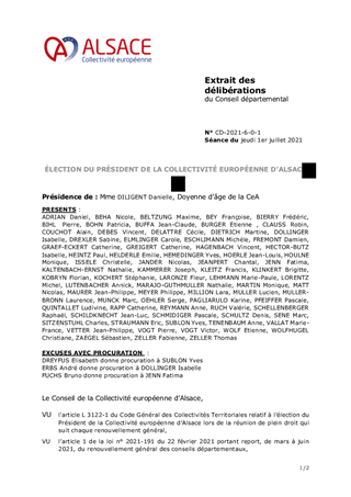 ÉLECTION DU PRÉSIDENT DE LA COLLECTIVITÉ EUROPÉENNE D'ALSACE