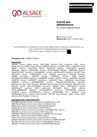 COMMISSION CONSULTATIVE DES SERVICES PUBLICS LOCAUX DE LA COLLECTIVITE EUROPEENNE D'ALSACE ELECTION DES CONSEILLERS D'ALSACE
