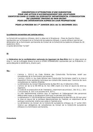 PDALHPD 67 - CONVENTIONS DE PARTENARIAT POUR LE VERSEMENT DE SUBVENTIONS DE FONCTIONNEMENT POUR L'ACCOMPAGNEMENT DES MENAGES AU TITRE DU DDELIND EN 2021