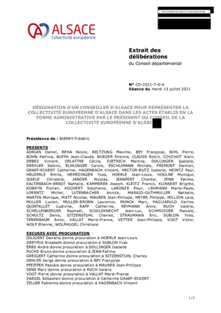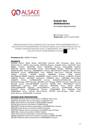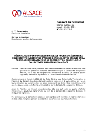 DÉSIGNATION D'UN CONSEILLER D'ALSACE POUR REPRÉSENTER LA COLLECTIVITÉ EUROPÉENNE D'ALSACE DANS LES ACTES ÉTABLIS EN LA FORME ADMINISTRATIVE PAR LE PRÉSIDENT DU CONSEIL DE LA COLLECTIVITÉ EUROPÉENNE D'ALSACE