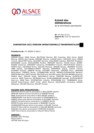 SUBVENTION 2021 MISSION OPERATIONNELLE TRANSFRONTALIERE