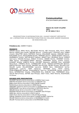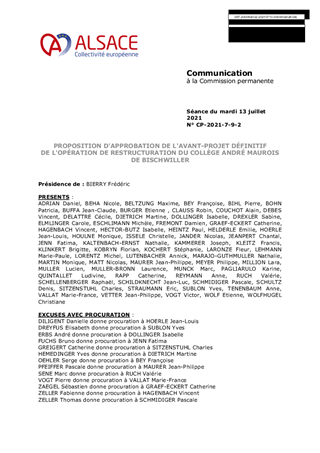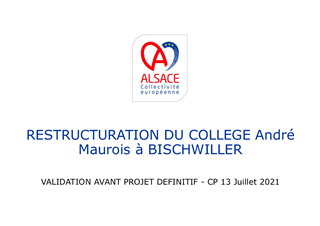 PROPOSITION D'APPROBATION DE L'AVANT-PROJET DÉFINITIF DE L'OPÉRATION DE RESTRUCTURATION DU COLLÈGE ANDRÉ MAUROIS DE BISCHWILLER