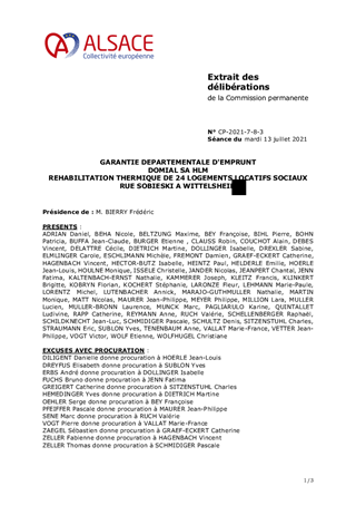 GARANTIE DEPARTEMENTALE D'EMPRUNT DOMIAL SA HLM REHABILITATION THERMIQUE DE 24 LOGEMENTS LOCATIFS SOCIAUX RUE SOBIESKI A WITTELSHEIM