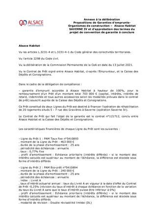 PROPOSITIONS DE GARANTIES D'EMPRUNTS - ORGANISMES DE CONSTRUCTION -ALSACE HABITAT SAVERNE IV ET D'APPROBATION DES TERMES DU PROJET DE CONVENTION DE GARANTIE À CONCLURE