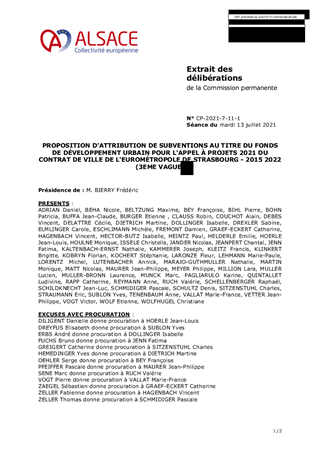 PROPOSITION D'ATTRIBUTION DE SUBVENTIONS AU TITRE DU FONDS DE DÉVELOPPEMENT URBAIN POUR L'APPEL À PROJETS 2021 DU CONTRAT DE VILLE DE L'EUROMÉTROPOLE DE STRASBOURG - 2015 2022 (3EME VAGUE)