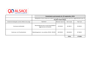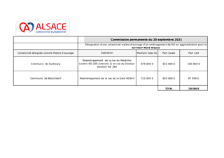 PROPOSITION DE DÉSIGNATION DE DIFFÉRENTES COLLECTIVITÉS COMME MAÎTRE D'OUVRAGE UNIQUE POUR L'AMÉNAGEMENT DE ROUTES DÉPARTEMENTALES EN AGGLOMÉRATION. TERRITOIRE DU BAS-RHIN.