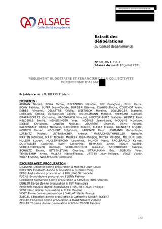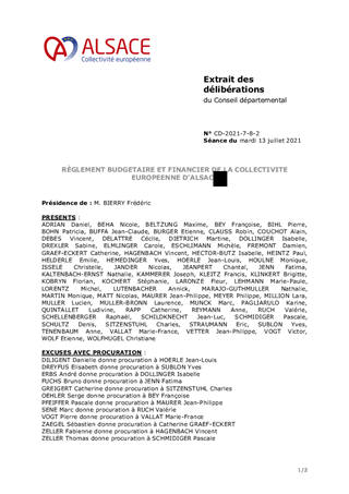 RÈGLEMENT BUDGETAIRE ET FINANCIER DE LA COLLECTIVITE EUROPEENNE D'ALSACE
