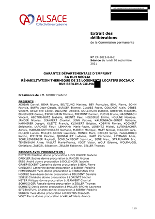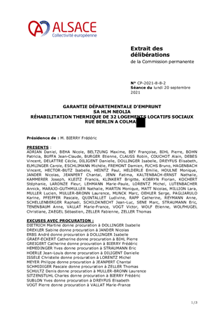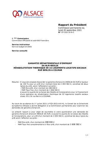 GARANTIE DÉPARTEMENTALE D'EMPRUNT SA HLM NEOLIA RÉHABILITATION THERMIQUE DE 32 LOGEMENTS LOCATIFS SOCIAUX RUE BERLIN A COLMAR