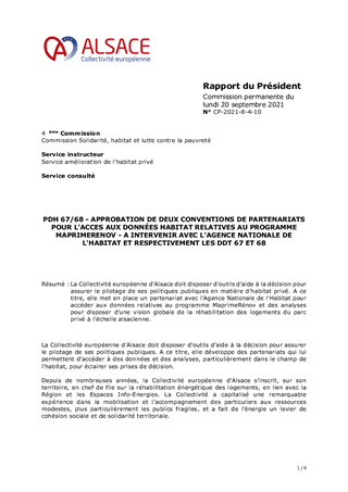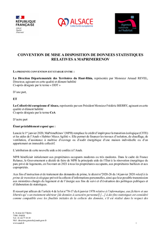 PDH 67/68 - APPROBATION DE DEUX CONVENTIONS DE PARTENARIATS POUR L'ACCES AUX DONNÉES HABITAT RELATIVES AU PROGRAMME MAPRIMERENOV - A INTERVENIR AVEC L'AGENCE NATIONALE DE L'HABITAT ET RESPECTIVEMENT LES DDT 67 ET 68