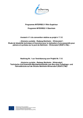 ETUDE DE FAISABILITÉ TECHNIQUE ET FINANCIÈRE POUR LA RÉALISATION D'UNE PASSERELLE POUR PIÉTONS ET CYCLISTES AU NIVEAU DU PONT DE BEINHEIM - WINTERSDORF (RD87/L78B) : AVENANT N°1 À LA CONVENTION INTERREG