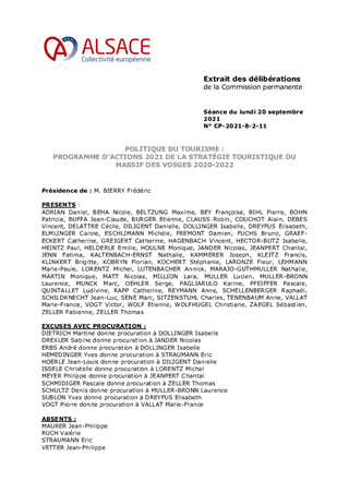 POLITIQUE DU TOURISME : PROGRAMME D'ACTIONS 2021 DE LA STRATÉGIE TOURISTIQUE DU MASSIF DES VOSGES 2020-2022