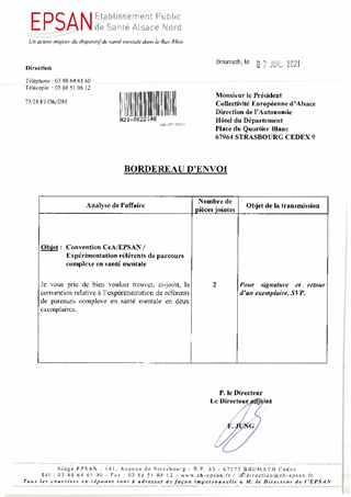 CONVENTION ENTRE LA COLLECTIVITÉ EUROPÉENNE D'ALSACE (CEA) ET L'ETABLISSEMENT PUBLIC DE SANTÉ ALSACE NORD (EPSAN) RELATIVE À L'EXPÉRIMENTATION DE RÉFÉRENTS DE PARCOURS COMPLEXE EN SANTÉ MENTALE