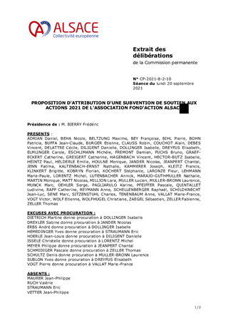 PROPOSITION D'ATTRIBUTION D'UNE SUBVENTION DE SOUTIEN AUX ACTIONS 2021 DE L'ASSOCIATION FOND'ACTION ALSACE