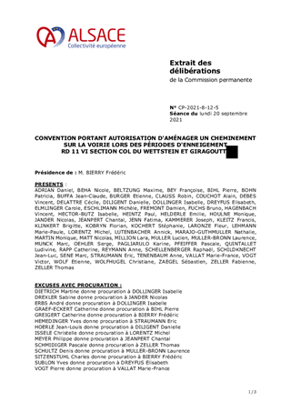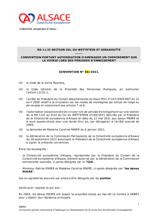 CONVENTION PORTANT AUTORISATION D'AMÉNAGER UN CHEMINEMENT SUR LA VOIRIE LORS DES PÉRIODES D'ENNEIGEMENT RD 11 VI SECTION COL DU WETTSTEIN ET GIRAGOUTTE