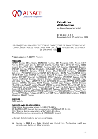 PROPOSITIONS D'ATTRIBUTION DE DOTATIONS DE FONCTIONNEMENT COMPLÉMENTAIRES POUR 2021 AUX COLLÈGES PUBLICS DU BAS-RHIN ET DU HAUT-RHIN