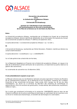 Le présent rapport a pour objet d'attribuer une subvention de fonctionnement d'un montant de 5 000,00 € à l'Université de Strasbourg en vue d'organiser, à l'échelle du Bas-Rhin, un événement de culture scientifique, technique et industrielle intitulé "fête de la science".