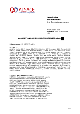 ACQUISITION D'UN ENSEMBLE IMMOBILIER A BARR