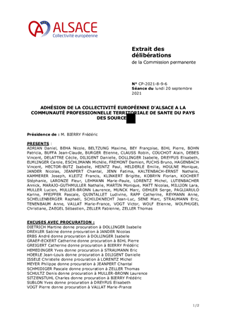 ADHÉSION DE LA COLLECTIVITÉ EUROPÉENNE D'ALSACE A LA COMMUNAUTÉ PROFESSIONNELLE TERRITORIALE DE SANTE DU PAYS DES SOURCES