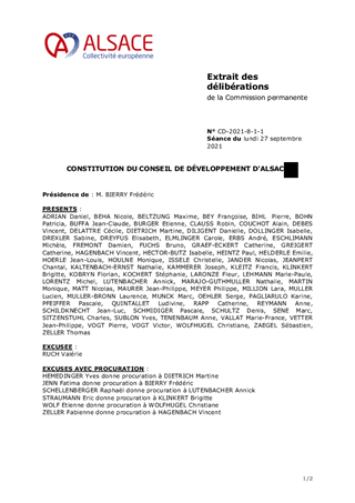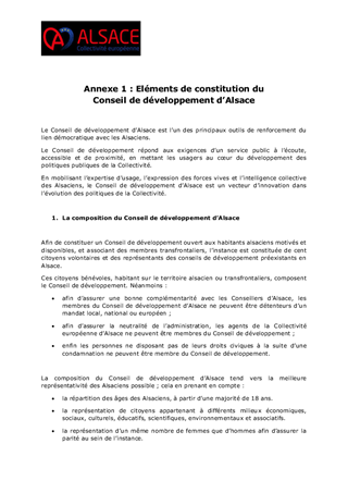 CONSTITUTION DU CONSEIL DE DÉVELOPPEMENT D'ALSACE