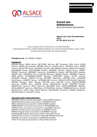 POLITIQUE EN FAVEUR DE LA MONTAGNE CONTRIBUTIONS COMPLÉMENTAIRES AU FONCTIONNEMENT 2021 DES SYNDICATS MIXTES DE MONTAGNE