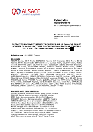 OPÉRATIONS D'INVESTISSEMENT RÉALISÉES SUR LE DOMAINE PUBLIC ROUTIER DE LA COLLECTIVITE EUROPEENNE D'ALSACE PAR D'AUTRES COLLECTIVITÉS - CONVENTIONS DE FINANCEMENT