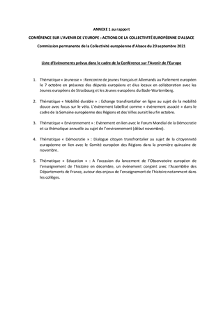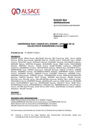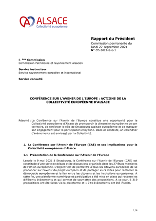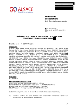 CONFÉRENCE SUR L'AVENIR DE L'EUROPE : ACTIONS DE LA COLLECTIVITÉ EUROPÉENNE D'ALSACE
