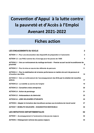 AVENANTS FINANCIERS AUX CONVENTIONS D'APPUI À LA LUTTE CONTRE LA PAUVRETÉ ET D'ACCÈS À L'EMPLOI