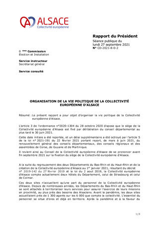 Le présent rapport a pour objet d’organiser la vie politique de la Collectivité européenne d'Alsace.