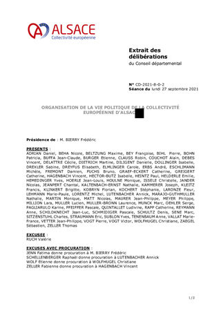 ORGANISATION DE LA VIE POLITIQUE DE LA COLLECTIVITÉ EUROPÉENNE D'ALSACE