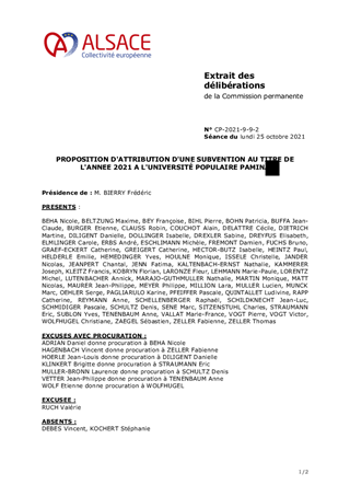PROPOSITION D'ATTRIBUTION D'UNE SUBVENTION AU TITRE DE L'ANNEE 2021 A L'UNIVERSITÉ POPULAIRE PAMINA