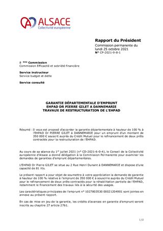 GARANTIE DÉPARTEMENTALE D'EMPRUNT EHPAD DR PIERRE GILET A DANNEMARIE TRAVAUX DE RESTRUCTURATION DE L'EHPAD