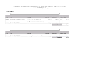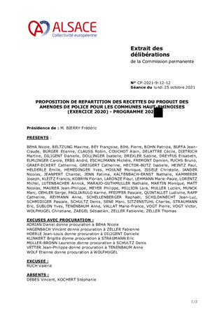 PROPOSITION DE REPARTITION DES RECETTES DU PRODUIT DES AMENDES DE POLICE POUR LES COMMUNES HAUT-RHINOISES (EXERCICE 2020) - PROGRAMME 2021
