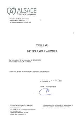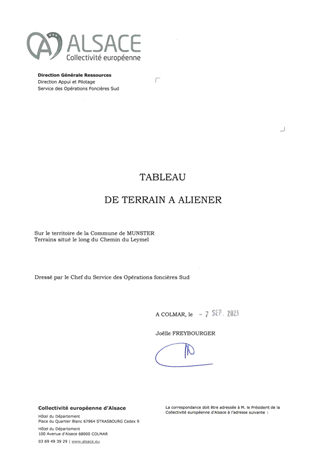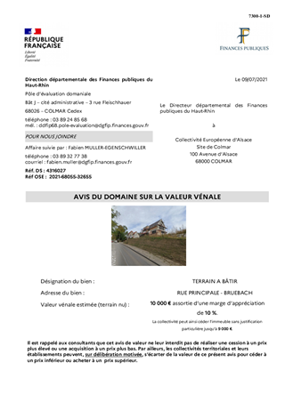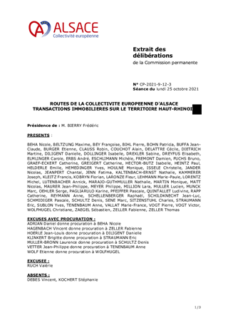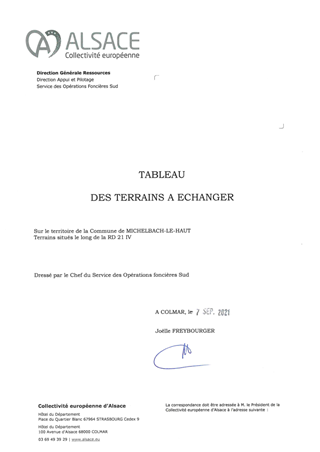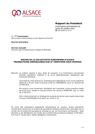 ROUTES DE LA COLLECTIVITE EUROPEENNE D'ALSACE TRANSACTIONS IMMOBILIERES SUR LE TERRITOIRE HAUT-RHINOIS