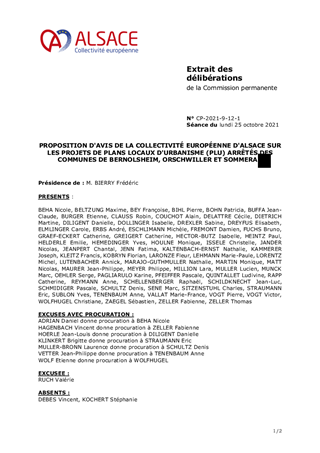 PROPOSITION D'AVIS DE LA COLLECTIVITÉ EUROPÉENNE D'ALSACE SUR LES PROJETS DE PLANS LOCAUX D'URBANISME (PLU) ARRÊTÉS DES COMMUNES DE BERNOLSHEIM, ORSCHWILLER ET SOMMERAU