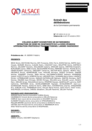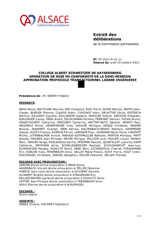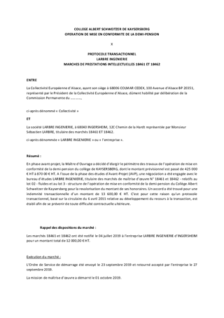 COLLEGE ALBERT SCHWEITZER DE KAYSERSBERG OPERATION DE MISE EN CONFORMITE DE LA DEMI-PENSION APPROBATION PROTOCOLE TRANSACTIONNEL LARBRE INGENIERIE