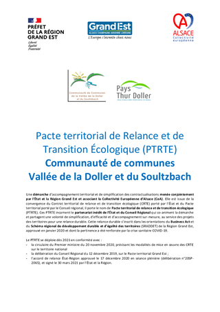 PACTES TERRITORIAUX DE RELANCE ET DE TRANSITION ECOLOGIQUE DU TERRITOIRE SUD ALSACE