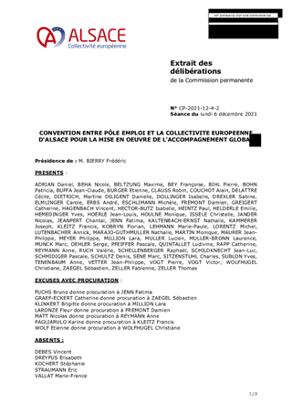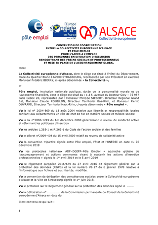 CONVENTION ENTRE PÔLE EMPLOI ET LA COLLECTIVITE EUROPEENNE D'ALSACE POUR LA MISE EN OEUVRE DE L'ACCOMPAGNEMENT GLOBAL