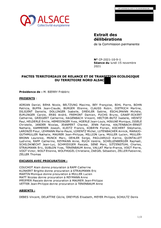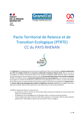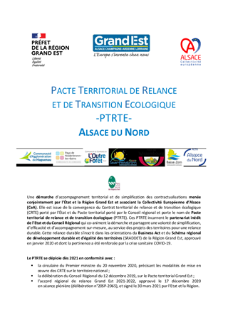 PACTES TERRITORIAUX DE RELANCE ET DE TRANSITION ECOLOGIQUE DU TERRITOIRE NORD ALSACE