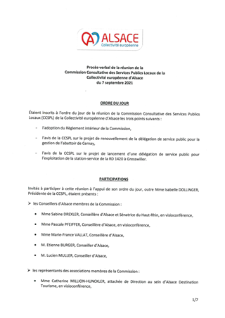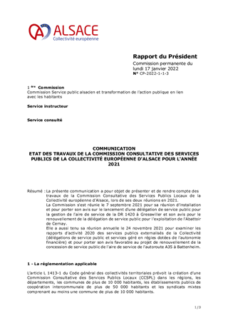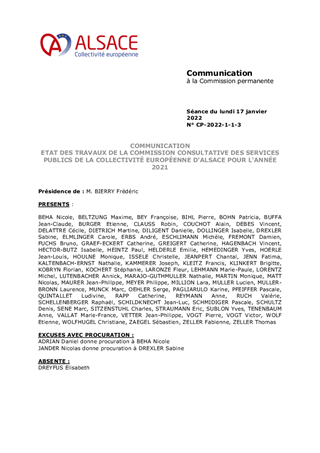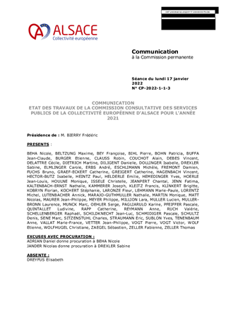 COMMUNICATION ETAT DES TRAVAUX DE LA COMMISSION CONSULTATIVE DES SERVICES PUBLICS DE LA COLLECTIVITÉ EUROPÉENNE D'ALSACE POUR L'ANNÉE 2021