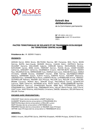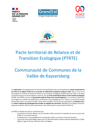 PACTES TERRITORIAUX DE RELANCE ET DE TRANSITION ECOLOGIQUE DU TERRITOIRE CENTRE ALSACE